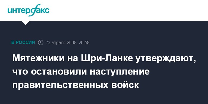 Дели. 23 апреля. ИНТЕРФАКС - Мятежники из движения "Тигры освобождения Тамил илама", действующие на севере Шри-Ланки, утверждают, что им удалось остановить масштабное наступление правительственных войск.