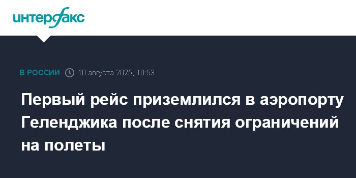Москва. 10 августа. INTERFAX.RU - Первый рейс приземлился в аэропорту Геленджика после снятия ограничений на полеты, введенных 8 августа для обеспечения безопасности, сообщил в воскресенье представитель Росавиации Артем Кореняко.