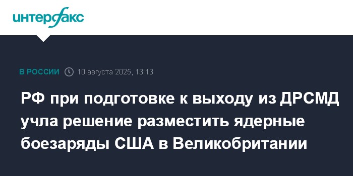 РФ при подготовке к выходу из ДРСМД учла решение разместить ядерные боезаряды США в Великобритании