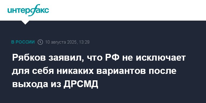 Москва. 10 августа. INTERFAX.RU - Россия не исключает для себя никаких шагов после выхода из моратория на размещение ракет средней и меньшей дальности (РСМД), заявил в воскресенье замглавы МИД РФ Сергей Рябков.