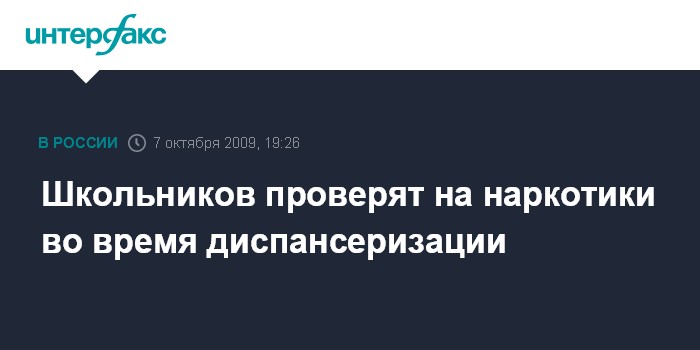 Москва. 7 октября. INTERFAX.RU - Тестировать российских школьников на употребление наркотиков будут в рамках обычной диспансеризации, сообщил директор Федеральной службы РФ по наркоконтролю (ФСКН) Виктор Иванов.