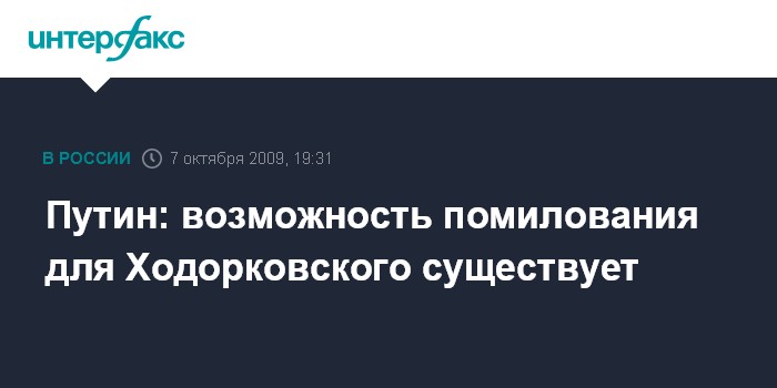 "Отвечая на вопрос о возможности помилования Ходорковского, Путин подчеркнул, что и такая возможность предусмотрена законом, однако, чтобы воспользоваться этим правом, осужденному необходимо полностью признать свою вину и обратиться с соответствующей просьбой", - сказал Песков.