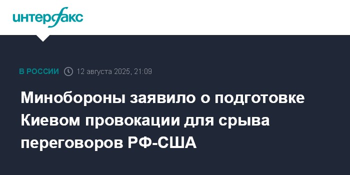 Москва. 12 августа. INTERFAX.RU - Министерство обороны РФ заявило, что Киев готовит провокацию в целях срыва намеченных на 15 августа российско-американских переговоров.