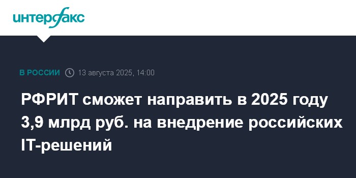РФРИТ сможет направить в 2025 году 3,9 млрд руб. на внедрение российских IT-решений