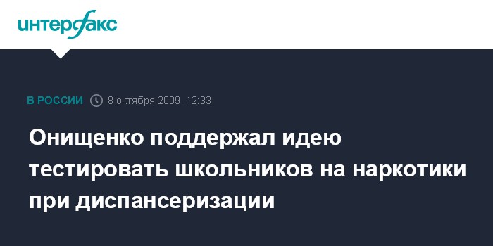 Москва. 8 октября. INTERFAX.RU – Тестирование российских школьников на наркотики в рамках обычной диспансеризации поможет остановить рост наркомании, будет способствовать профилактике ВИЧ-инфекции и гепатита, заявил глава Роспотребнадзора, главный государственный санитарный врач РФ Геннадий Онищенко.