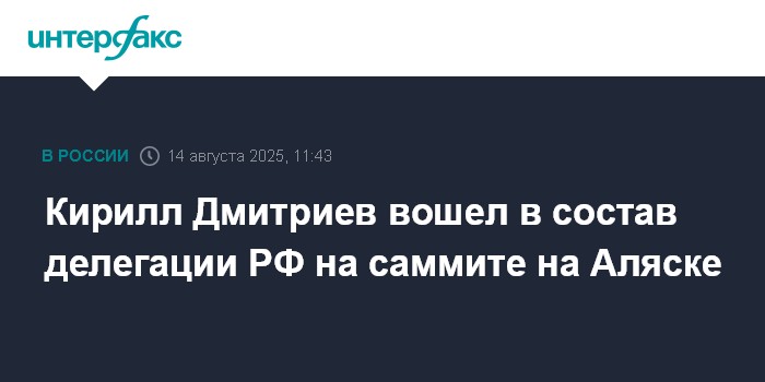 "Дмитриев 15 августа примет участие в составе официальной делегации в саммите лидеров России и США", - сказали собеседники агентства.