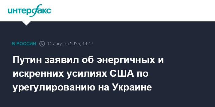 Москва. 14 августа. INTERFAX.RU - США предпринимают искренние и энергичные усилия для прекращения боевых действий на Украине и выхода на приемлемые для всех договоренности, заявил президент РФ Владимир Путин.