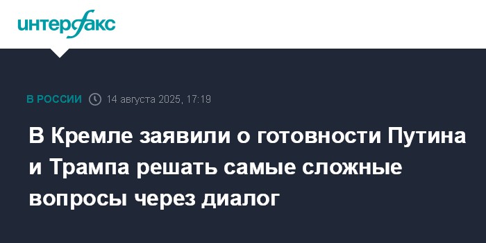 Москва. 14 августа. INTERFAX.RU - Президенты России и США Владимир Путин и Дональд Трамп имеют политическую волю на решение существующих вопросов путем диалога, чего не скажешь о европейских лидерах, заявил пресс-секретарь Путина Дмитрий Песков.