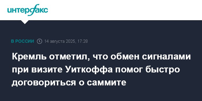 Москва. 14 августа. INTERFAX.RU - Сигналы, которыми Москва и Вашингтон обменялись во время последнего приезда в Россию спецпосланника президента США Стива Уиткоффа, позволили сторонам оперативно договориться о проведении саммита, заявил пресс-секретарь президента РФ Дмитрий Песков.