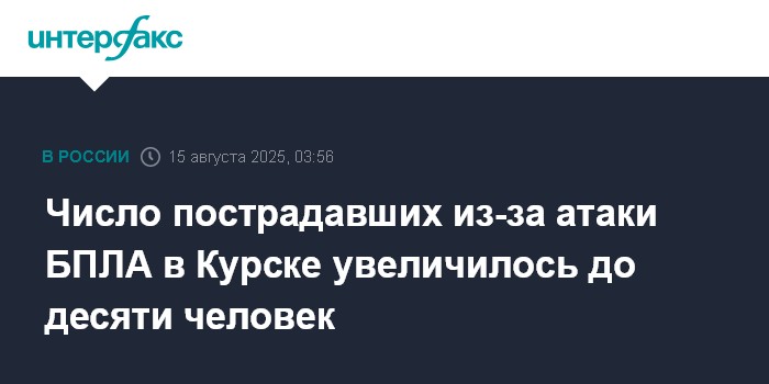 Москва. 15 августа. INTERFAX.RU - Десять человек пострадали в результате атаки украинского беспилотника на многоквартирный дом в Курске, сообщил врио губернатора Курской области Александр Хинштейн.