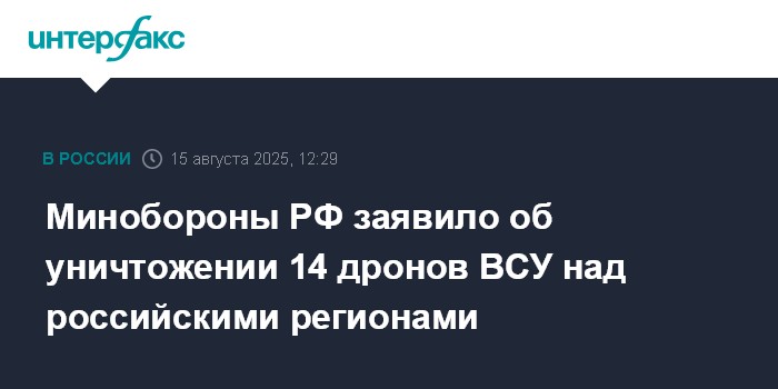 Минобороны РФ заявило об уничтожении 14 дронов ВСУ над российскими регионами