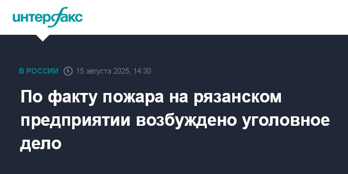 Москва. 15 августа. INTERFAX.RU - В Рязанской области возбудили уголовное дело по факту пожара на предприятии в поселке Лесной Шиловского района, сообщило региональное управление СКР.