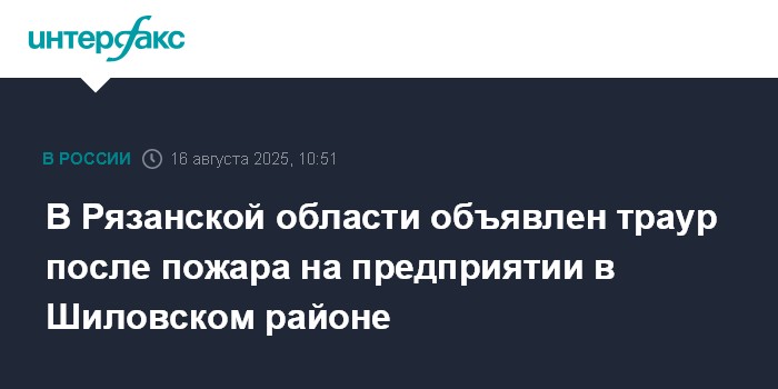 В Рязанской области объявлен траур после пожара на предприятии в Шиловском районе