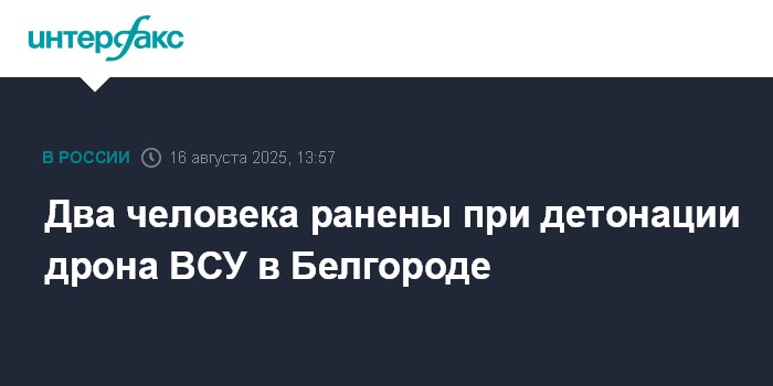 Москва. 16 августа. INTERFAX.RU - Два мирных жителя пострадали при детонации беспилотников ВСУ в Белгороде, сообщил губернатор Вячеслав Гладков.