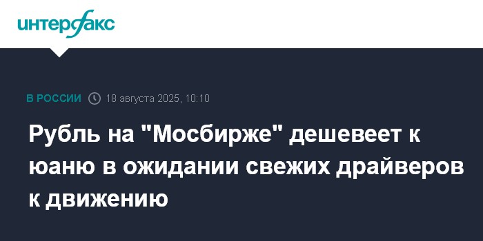 Москва. 18 августа. INTERFAX.RU - На "Московской бирже" утром в понедельник рубль слегка дешевеет к юаню в ожидании свежих драйверов к движению.