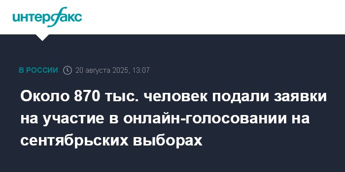 Около 870 тыс. человек подали заявки на участие в онлайн-голосовании на сентябрьских выборах