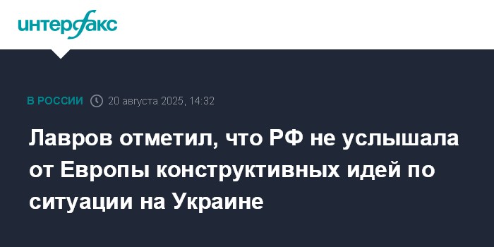Москва. 20 августа. INTERFAX.RU - Россия не услышала от европейских лидеров конструктивных идей по урегулированию ситуации на Украине на фоне их визита в Вашингтон, наблюдает агрессивное нагнетание обстановки, заявил министр иностранных дел РФ Сергей Лавров.