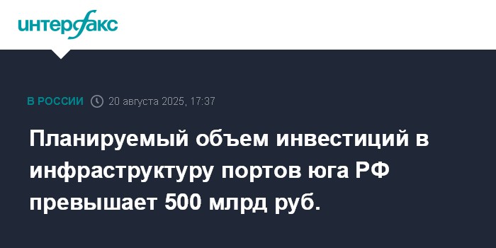 Москва. 20 августа. INTERFAX.RU - Объем инвестиций в инфраструктуру портов Азово-Черноморского бассейна до 2030 года составит более 500 млрд рублей, сообщил помощник президента РФ, председатель Морской коллегии Николай Патрушев.
