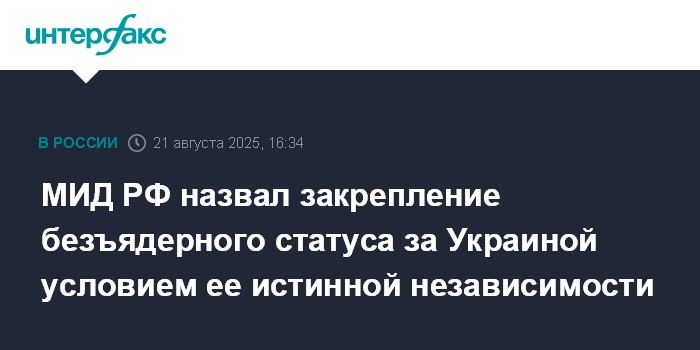 МИД РФ назвал закрепление безъядерного статуса за Украиной условием ее истинной независимости