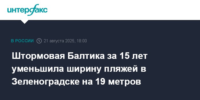 Москва. 21 августа. INTERFAX.RU - Авандюну и пляжи в районе курортного Зеленоградска в Калининградской области предстоит защитить от размыва Балтикой, так как за последние 15 лет ширина берега сократилась на 19 метров, сообщила государственное бюджетное учреждение Калининградской области "Балтберегозащита" на своей странице "ВКонтакте".