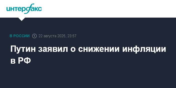 Москва. 22 августа. INTERFAX.RU - Высокая процентная ставка в России не будет вечной, инфляция снижается, и финансовые власти страны отреагируют на это соответствующим образом, заявил президент Владимир Путин.