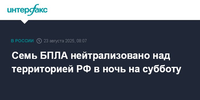 Cемь БПЛА нейтрализовано над территорией РФ в ночь на субботу