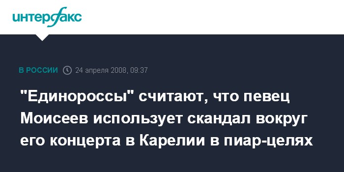 "Единороссы" считают, что певец Моисеев использует скандал вокруг его концерта в Карелии в пиар-целях