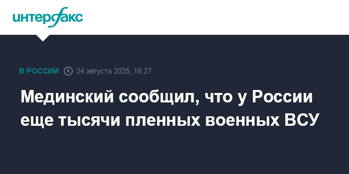 Москва. 24 августа. INTERFAX.RU - У России остаются еще тысячи пленных военнослужащих ВСУ, заявил помощник президента РФ Владимир Мединский.
