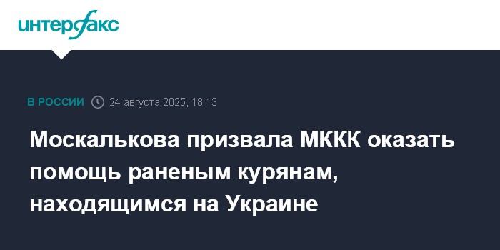 Москва. 24 августа. INTERFAX.RU - Уполномоченный по правам человека в РФ Татьяна Москалькова сообщила, что обратилась к украинской стороне для незамедлительного освобождения всех гражданских лиц, и в первую очередь, раненных российских граждан, удерживаемых на Украине.