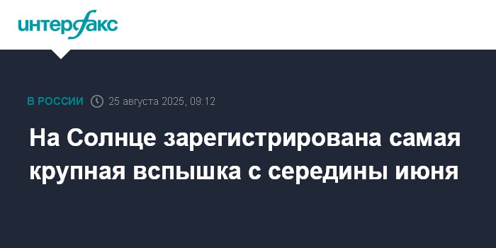 Москва. 25 августа. INTERFAX.RU - На Солнце зарегистрирована самая крупная вспышка за период с 20 июня этого года, сообщили в лаборатории солнечной астрономии Института космических исследований (ИКИ) и Института солнечно-земной физики (ИСЗФ) РАН.