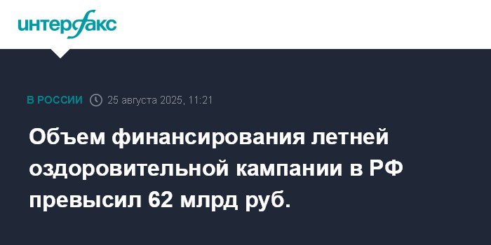 Объем финансирования летней оздоровительной кампании в РФ превысил 62 млрд руб.