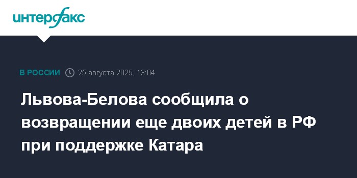 Львова-Белова сообщила о возвращении еще двоих детей в РФ при поддержке Катара