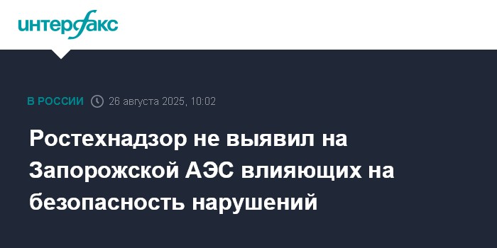 Москва. 26 августа. INTERFAX.RU - Ростехнадзор не выявил влияющих на безопасность нарушений в системе учета ядерных материалов на Запорожской АЭС в результате проверки, сообщает телеграм-канал станции.