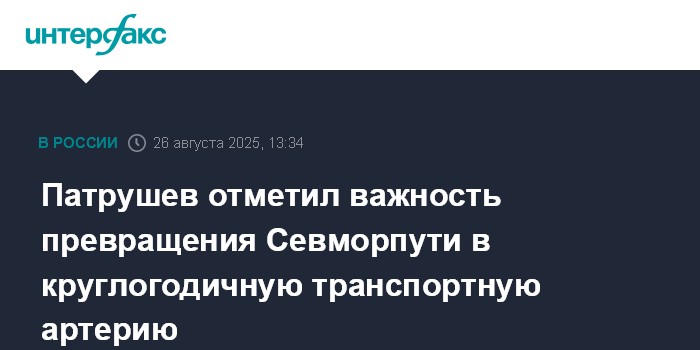 Москва. 26 августа. INTERFAX.RU - Превращение Севморпути в безопасную круглогодичную транспортную артерию является одним из ключевых приоритетов морской политики РФ, заявил помощник президента России, глава Морской коллегии Николай Патрушев