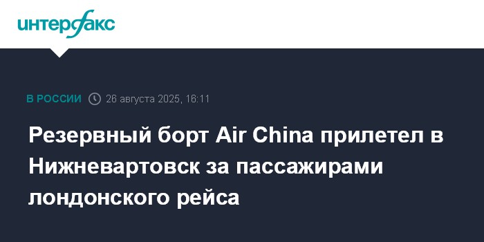 Москва. 26 августа. INTERFAX.RU - Самолет авиакомпании Air China приземлился в аэропорту Нижневартовска (Ханты-Мансийский автономный округ), чтобы забрать пассажиров вынужденно севшего там рейса Пекин - Лондон, сообщили "Интерфаксу" в пресс-службе Уральской транспортной прокуратуры.