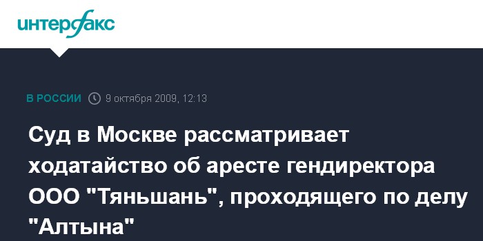 Суд в Москве рассматривает ходатайство об аресте гендиректора ООО "Тяньшань", проходящего по делу "Алтына"