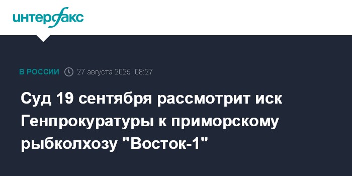 Суд 19 сентября рассмотрит иск Генпрокуратуры к приморскому рыбколхозу "Восток-1"