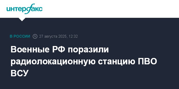 Москва. 27 августа. INTERFAX.RU - Российские военные нанесли удар по радиолокационной станции противовоздушной обороны ВСУ, уничтожили за сутки 162 украинских беспилотника, сообщили в Минобороны РФ в среду.