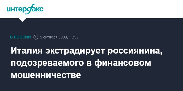 Италия экстрадирует россиянина, подозреваемого в финансовом мошенничестве