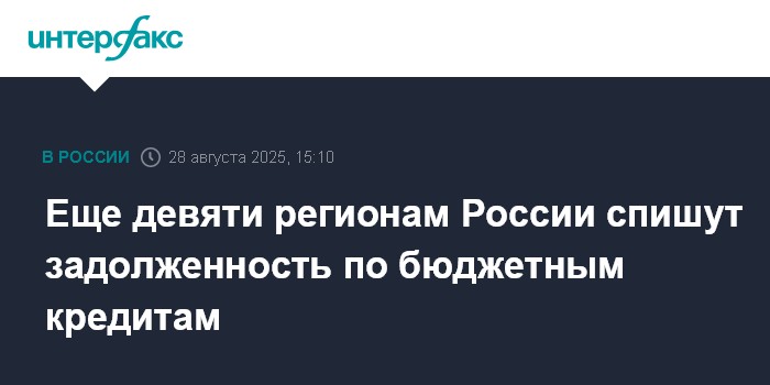 Москва. 28 августа. INTERFAX.RU - Правительство спишет часть задолженности по бюджетным кредитам еще девяти регионам, сообщил на заседании премьер-министр Михаил Мишустин.