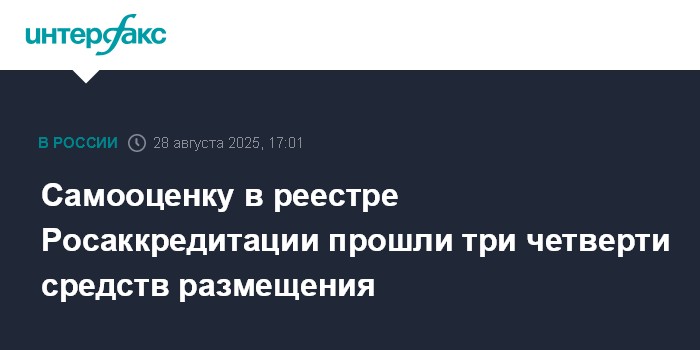 Москва. 28 августа. INTERFAX.RU - По состоянию на 28 августа три четверти всех средств размещения в Роччмм прошли самооценку и направили данные в Росаккредитацию, из них 7 тыс. - новые, сообщила пресс-служба ведомства