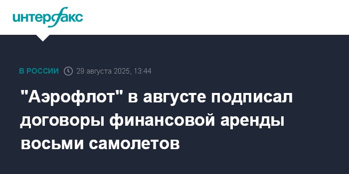 "Аэрофлот" в августе подписал договоры финансовой аренды восьми самолетов