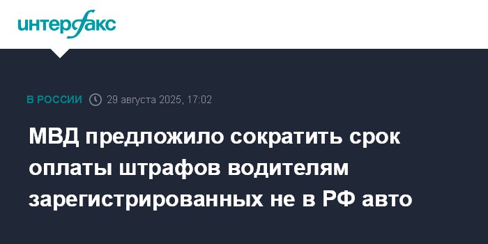 Москва. 29 августа. INTERFAX.RU - В МВД России предложили сократить срок оплаты административных штрафов с 60 до одного дня владельцам автомобилей, зарегистрированных в иностранных государствах, сообщили в пресс-центре министерства.