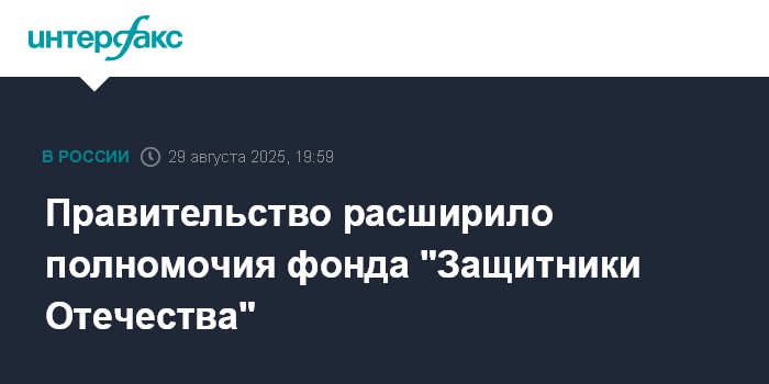 Москва. 29 августа. INTERFAX.RU - У государственного фонда поддержки участников специальной военной операции (СВО) "Защитники Отечества" появится больше возможностей для оказания помощи их семьям.