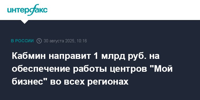 Кабмин направит 1 млрд руб. на обеспечение работы центров "Мой бизнес" во всех регионах