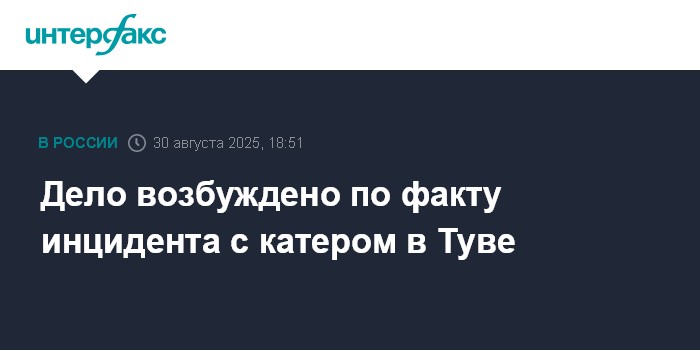 Москва. 30 августа. INTERFAX.RU - Следователи возбудили уголовное дело в связи с опрокидыванием катера типа "Борус" на реке Малый Енисей в Туве, сообщает в субботу пресс-служба Восточного межрегионального СУ на транспорте СКР.