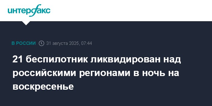 21 беспилотник ликвидирован над российскими регионами в ночь на воскресенье