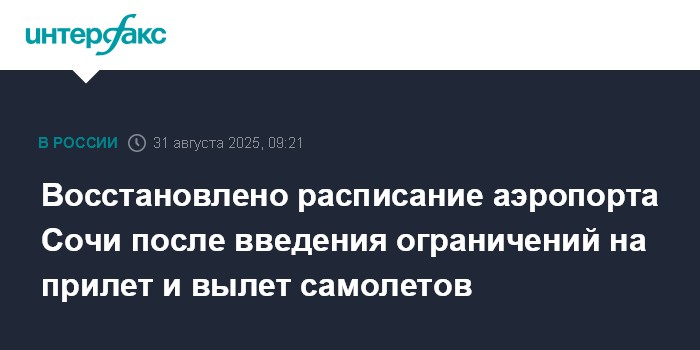 "После введения временных ограничений на прием и выпуск ВС (воздушных судов), вводимых ночью 30 августа, расписание восстановилось", - сказал представитель пресс-службы.