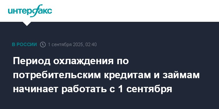 Период охлаждения по потребительским кредитам и займам начинает работать с 1 сентября