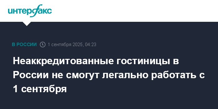 Москва. 1 сентября. INTERFAX.RU - С 1 сентября коллективные средства размещения в России, которые не прошли классификацию, не смогут принимать новые брони, в том числе на сервисах туристических агрегаторов. Правила распространяются не только на гостиницы, но и на кемпинги, санатории, базы отдыха, глэмпинги, хостелы.